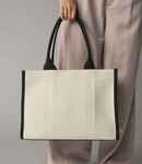 66% polyester/23% cotton/11% other fibres. Premium twill fabric. Recycled polyester soft touch lining. Contrast carry/shoulder straps (59cm long), natural is self colour. High shine gold metal trims. Internal baseboard. Tear out label. Capacity 20 litres. Concealed zip in lining for decoration.